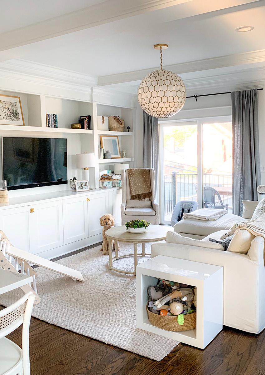 The living room is a shared space meant for the whole family, but creating a small, dedicated corner for a child allows them to engage independently while still being part of family life. A low shelf can hold baskets with books or work materials. These items can be rotated as the child’s interests change. A childsized chair or beanbag provides a comfortable place to read, rest, or engage in activities. Many children prefer to work on the floor, so providing a small basket of area rugs can help define their personal workspace.