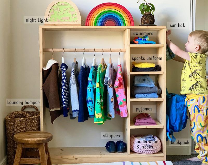 • Cloths on a shelf that the child can reach- let them choose their own clothes and put them away