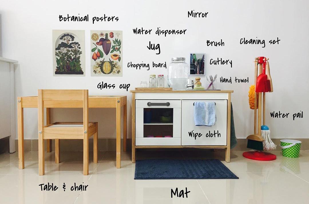 These simple setups allow children to actively participate in family life, building skills, confidence, and a sense of responsibility.