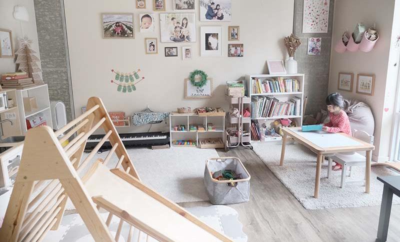 • Shelves or cabinets organized for certain toys, books, puzzles, dolls or trucks