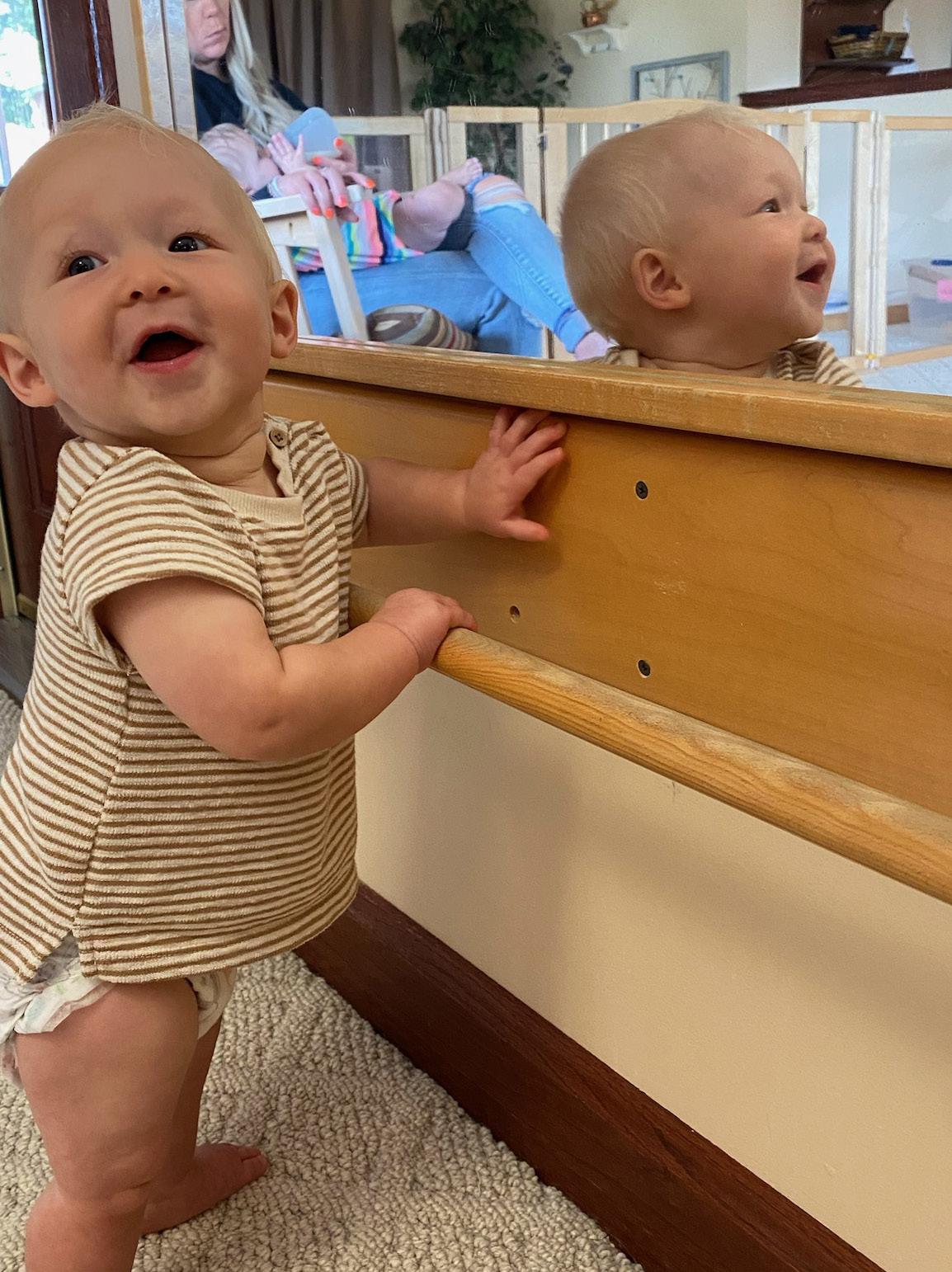 changing mat on the floor instead of a changing table. When the infant can stand securely, encourage standing during changes and allow them to undress independently. This supports the transition to toilet use. Always help your infant wash their hands after diaper changes or toilet use, modeling hygiene habits.
