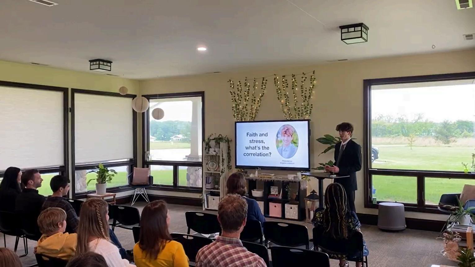 This year’s capstones offered a powerful glimpse into the minds and hearts of our seniors. Topics ranged from the physiological and emotional impact of caffeine on adolescents, to a psychological deep-dive into how faith and stress intersect. One student explored the effectiveness of emotional well-being courses on high school students, while another examined the unexpected relationship between interior design and student productivity. From studying cownose rays in touch tanks to dissecting the most successful genres across social media, each project reflected a genuine curiosity and a drive to make sense of the world.