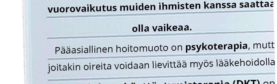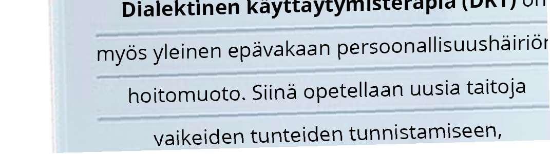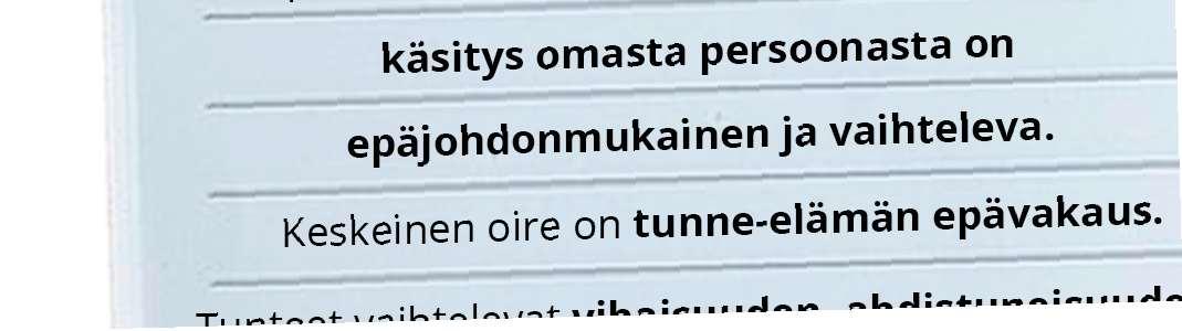 Mitä vanhemmaksi tulin, sitä vähemmän sain apua ammattilaisille juttelusta. Minulla on diagnosoitu nyt myös epävakaa persoonallisuushäiriö ja kokisin saavani enemmän apua siihen esimerkiksi dialektisesta käyttäytymisterapiasta.