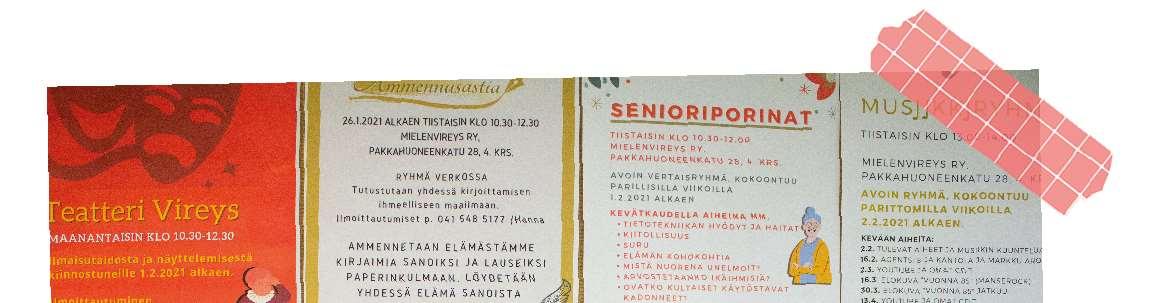 Lisäksi halusin tuoda esille Oulun alueen kolmannen sektorin palveluita, jotka voisivat tuoda apua jollekin sitä kaipaavalle. Näihin paikkoihin tutustuminen oli myös hyvin opettavainen ja ilahduttava kokemus. On hienoa saada tietää, kuinka paljon matalan kynnyksen mielenterveystyötä Oulussa tehdään. On ilo päästä kertomaan näistä paikoista myös eteenpäin.
