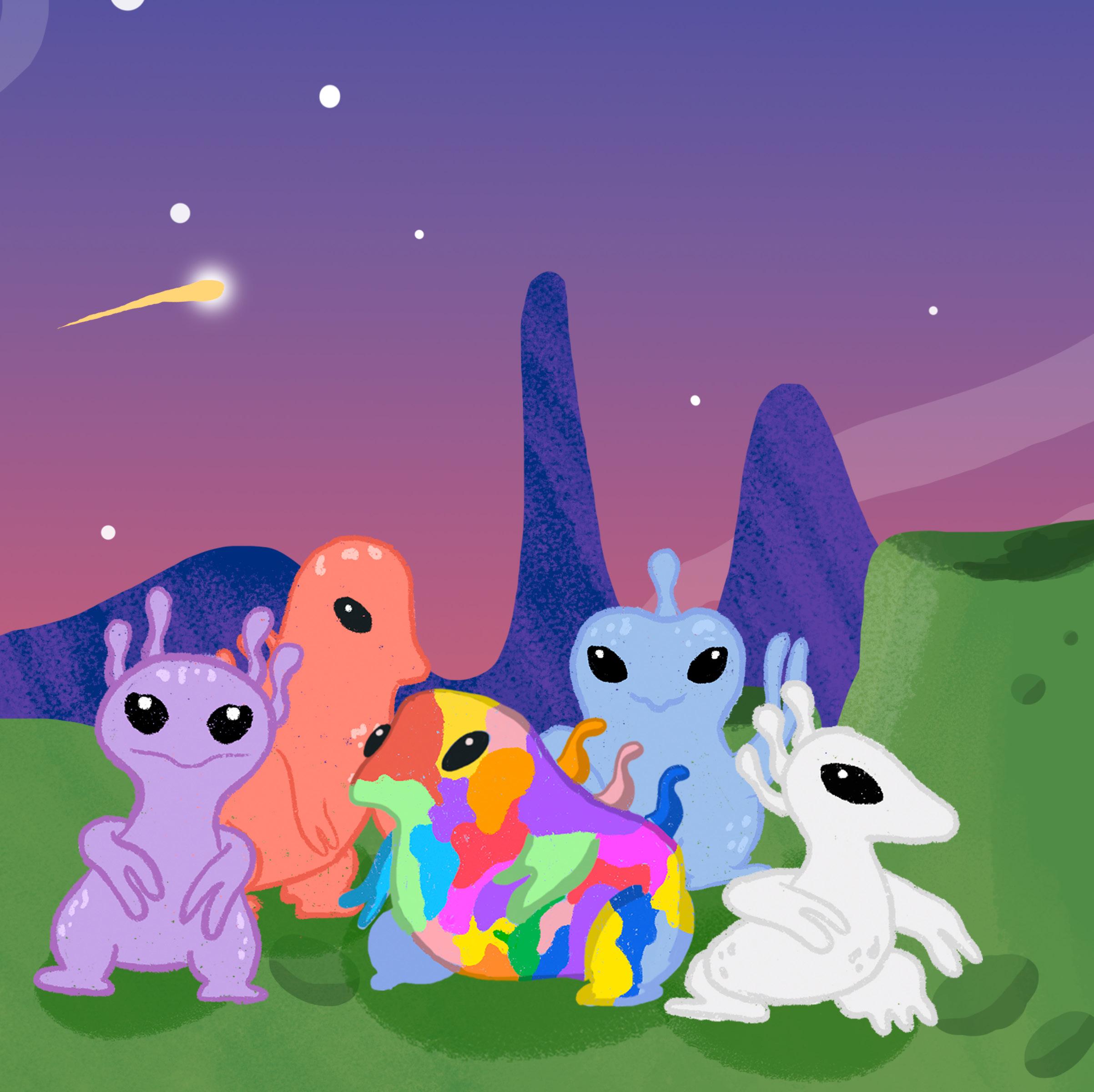 This is a story of an colourful alien named GLURP who feels insecure and different among the other aliens who only have one colour.