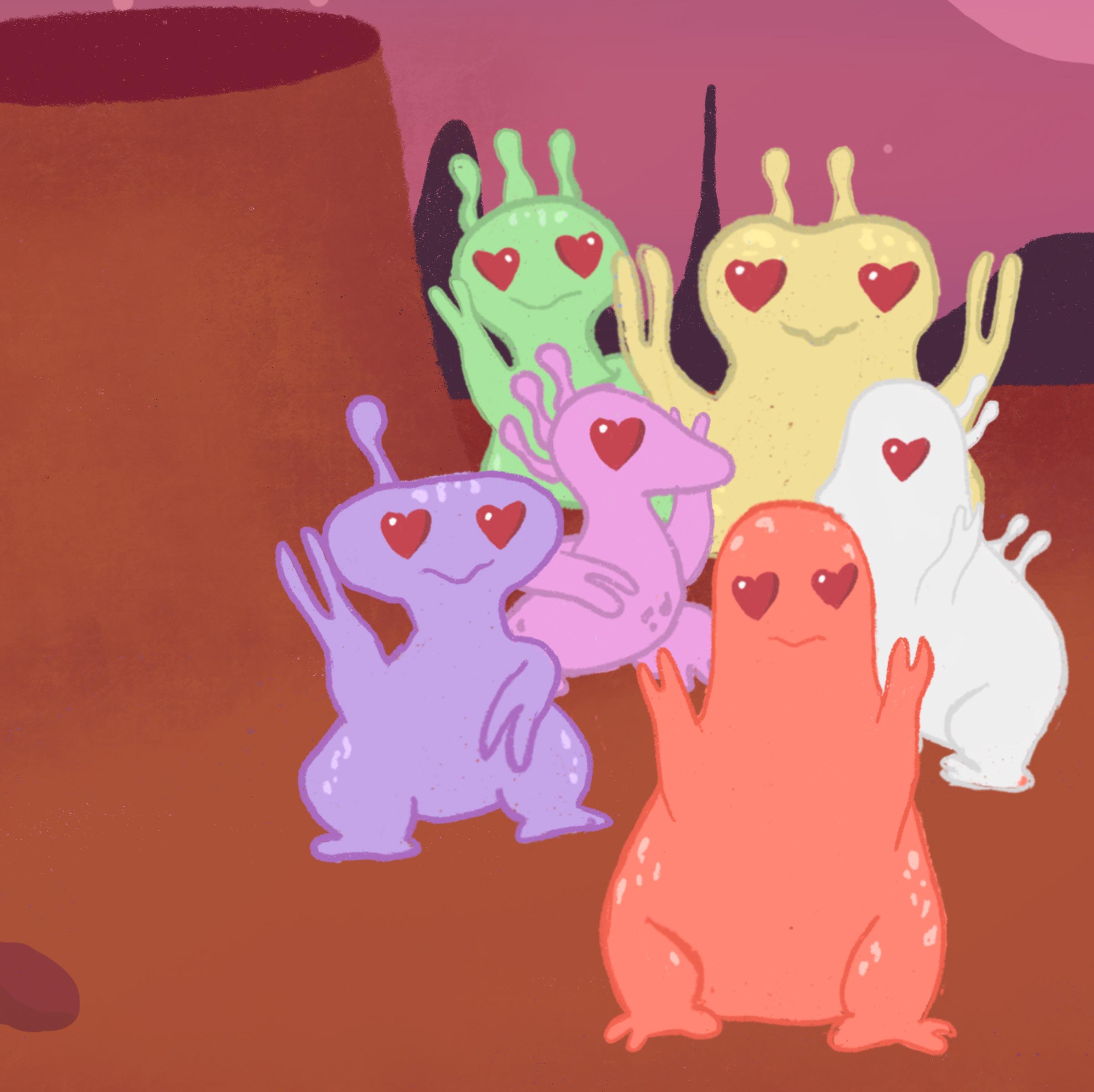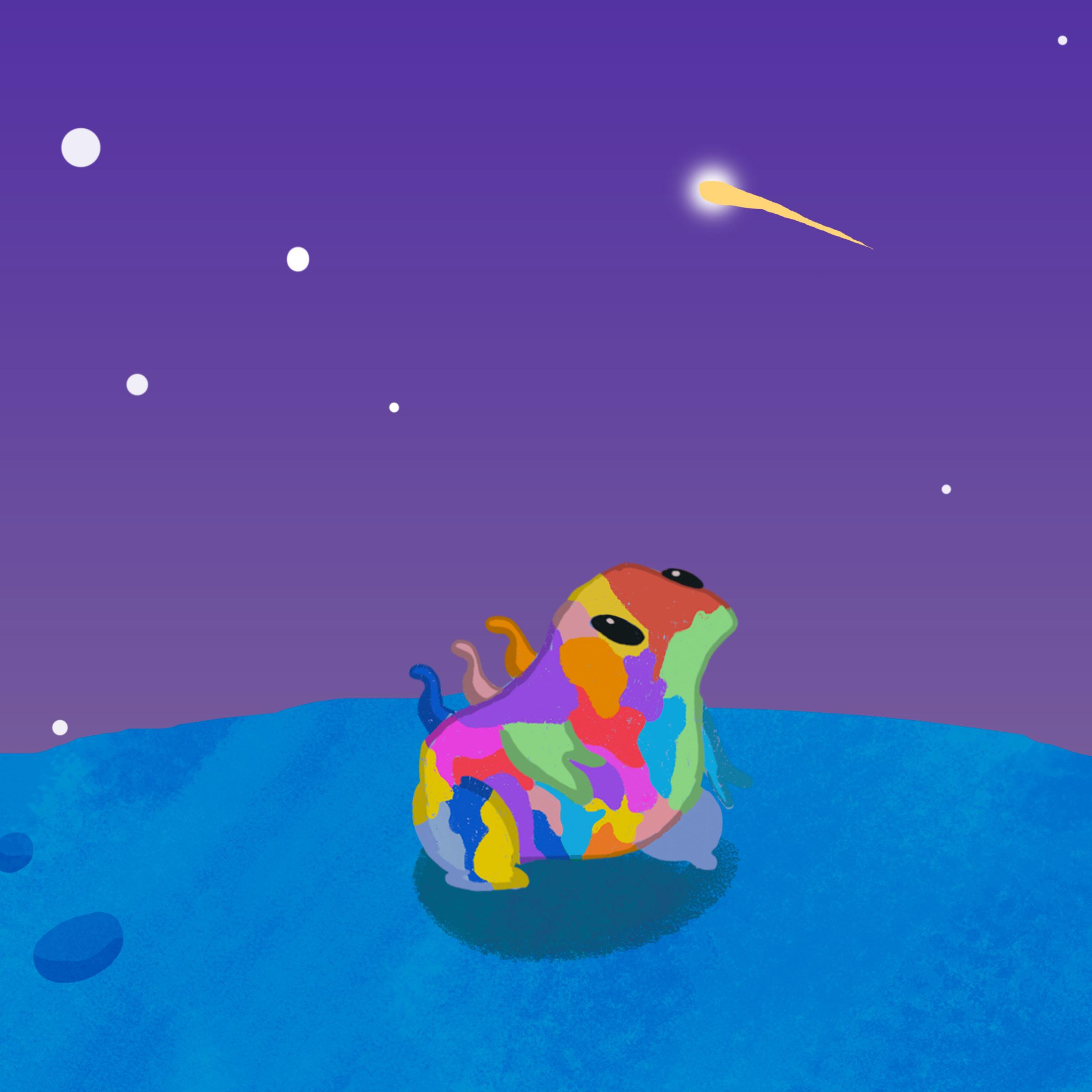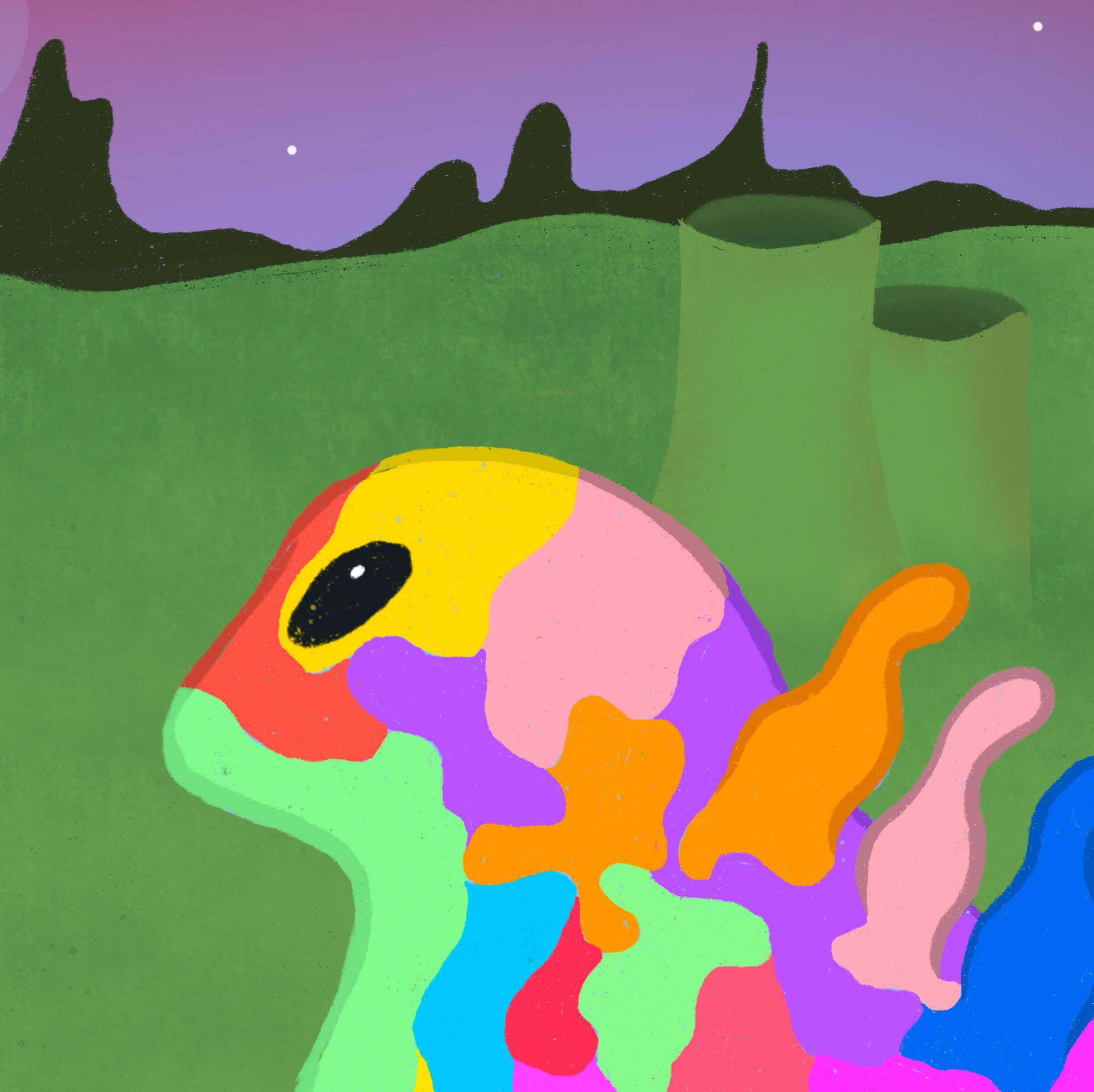 Glurp feels ashamed for having so many different colours. He wants to be just red, or just purple, or just green. He wished he could be like the others.
