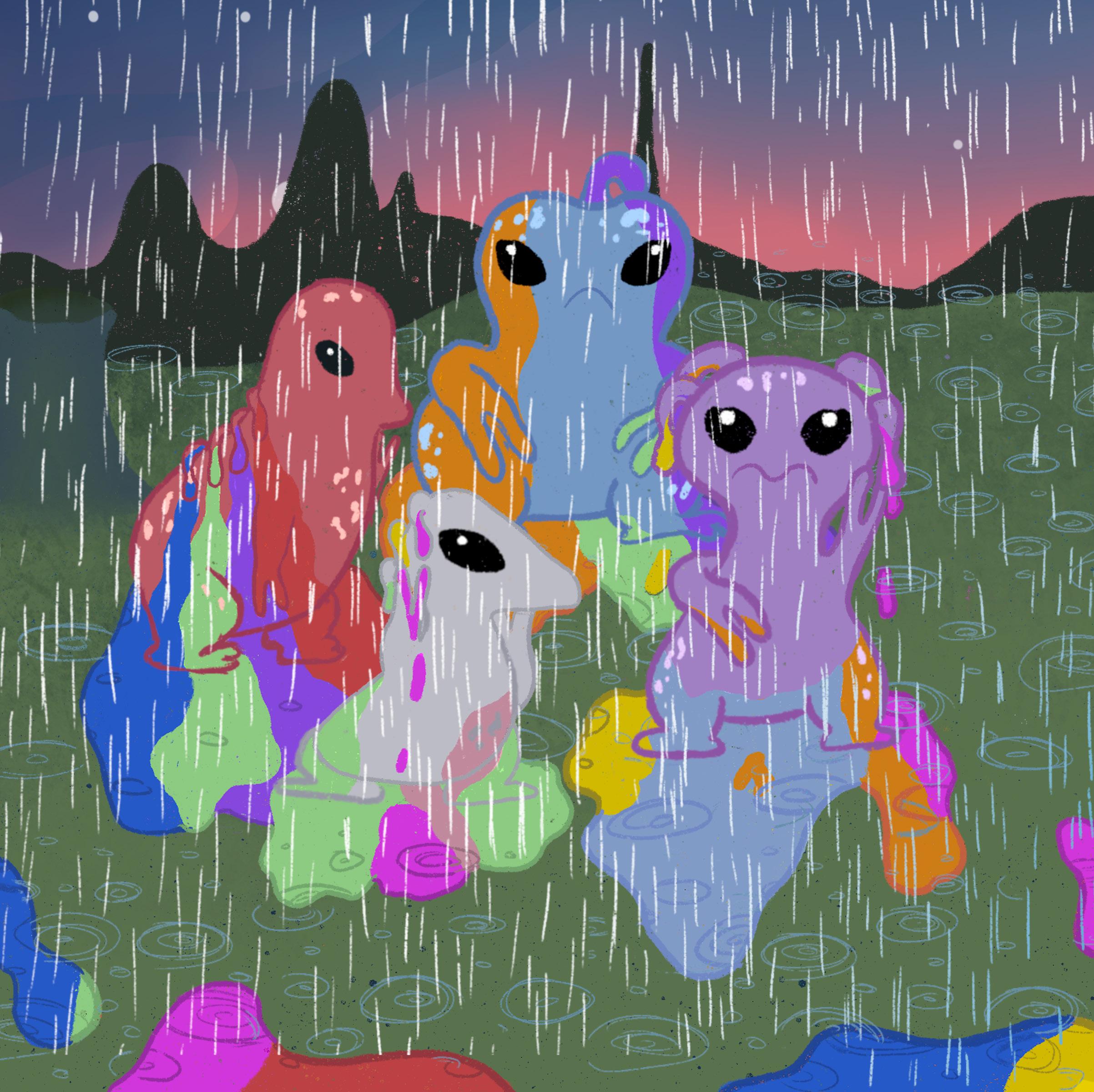 But as soon as the rain arrives, all the colours wash away, and they are back to having one boring colour.