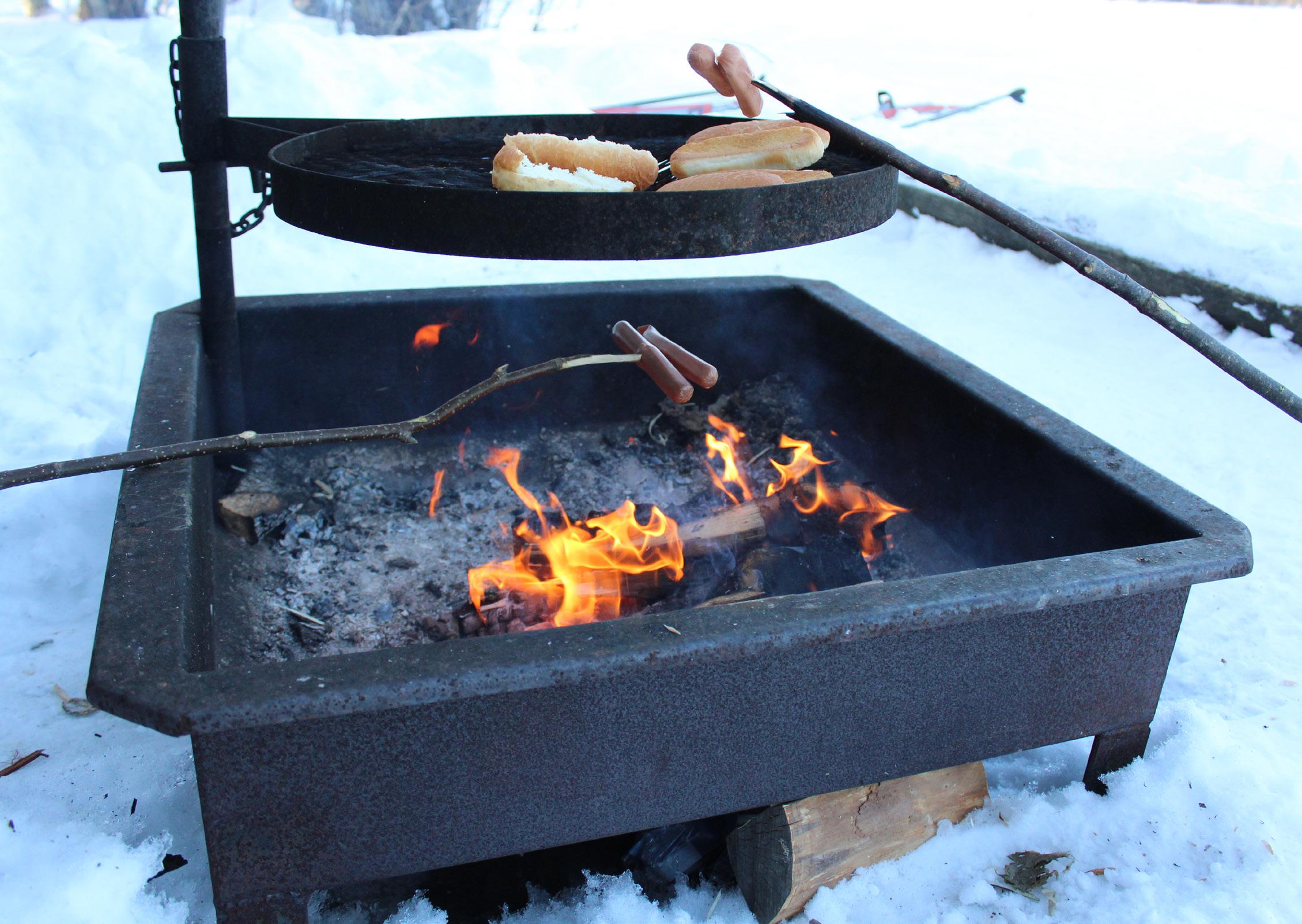 ta sytyttäessä ei voimasanoilta vältytä, sillä puhuri sammuttaa joka välissä nuotion alun ja valtava määrä savua puskee silmille. Kun saavuimme laavulle, nuotiopohjassa oli vielä hiillos edellisten kävijöiden jäljiltä, joten ainakin jollakulla tulenteko on onnistunut. Partiolaisen taidot ovat todella testissä ja lopulta useamman yrityksen jälkeen puut syttyvät ja retkieväitä voidaan alkaa ottaa repuista esille.