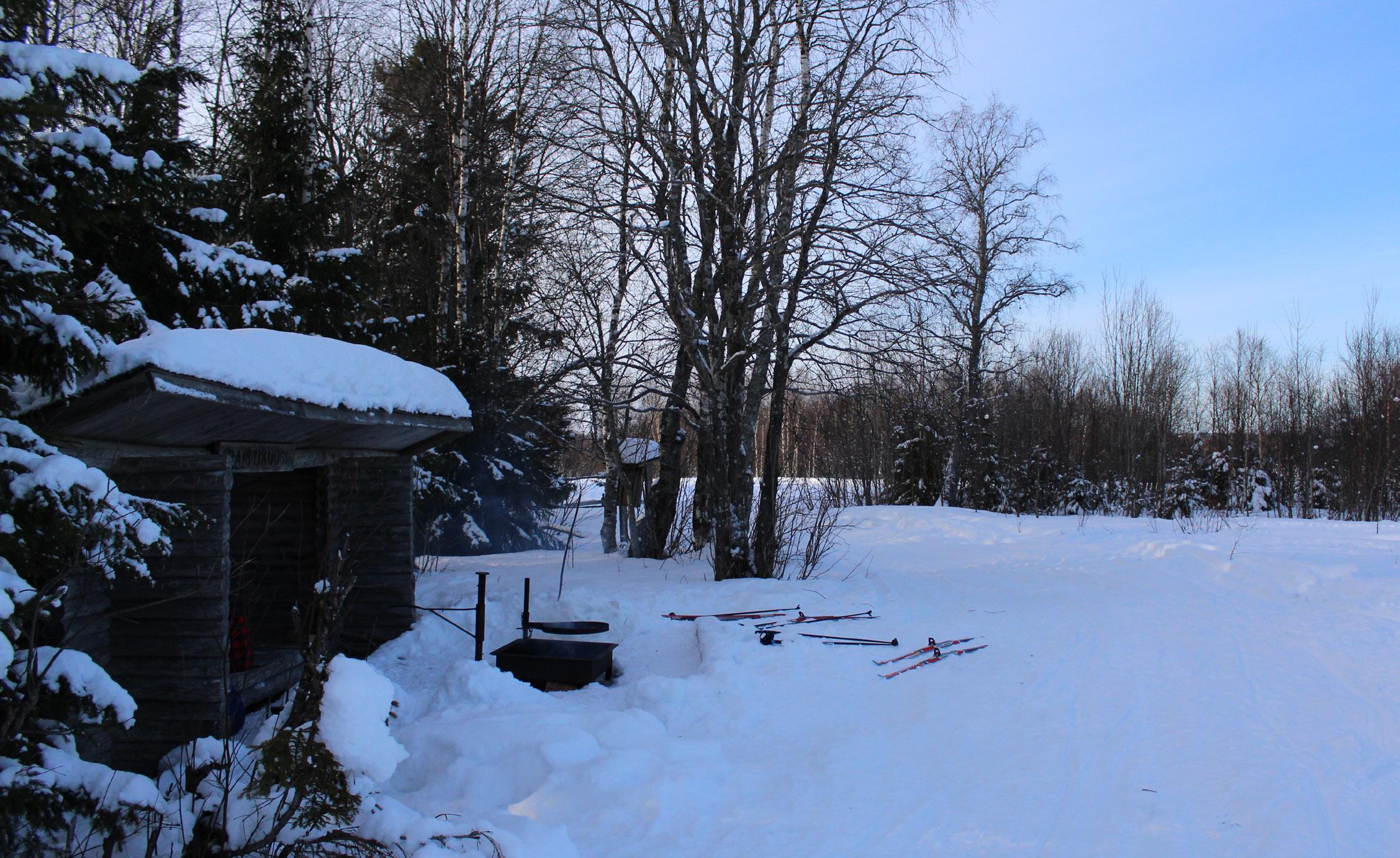 Laavu palveli hyvin kävijäänsä ja on aika jättää saari taakse. Muita retkeilijöitä tulistelupaikalle ei vaikuta saapuvan, vaikkakin saaren ympärillä olevaa hiihtolatua pitkin kulkee yksittäisiä sivakoijia.