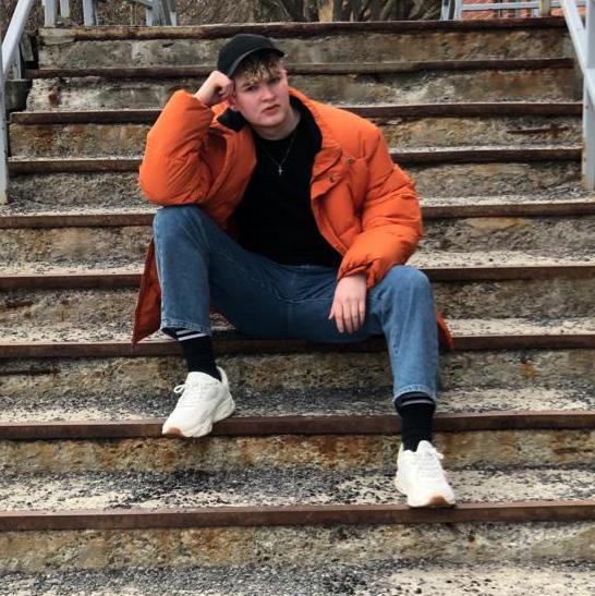 Värikkääseen printtipaitaan pukeutunut Helanen kuvailee itseään aivan tavalliseksi nuoreksi: iloiseksi, nauravaiseksi ja hymyileväiseksi.