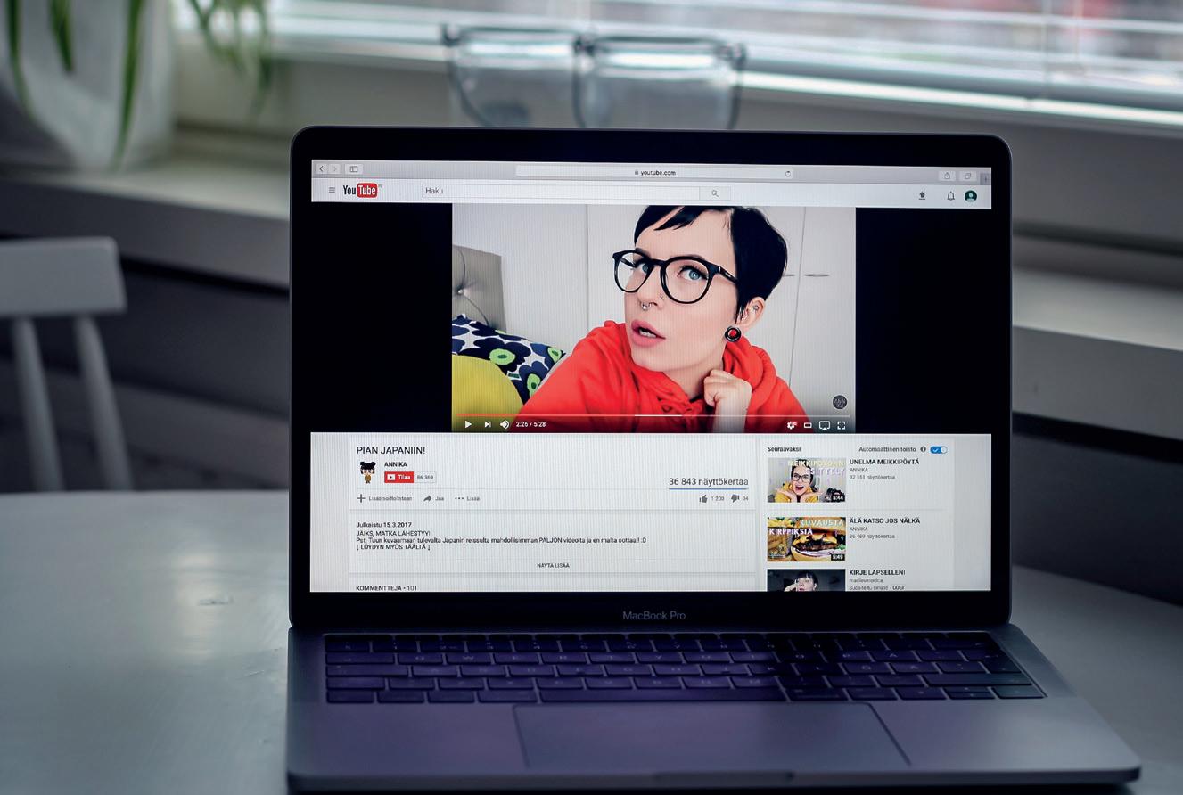 Oululainen videobloggaaja Annika Jaakkola on tehnyt videoita YouTubeen jo neljän vuoden ajan ja siitä noin kaksi vuotta hän on tehnyt sitä kokopäivätyönään. YouTubessa rahaa tulee sekä mainosten että erilaisten kaupallisten yhteistöiden kautta.