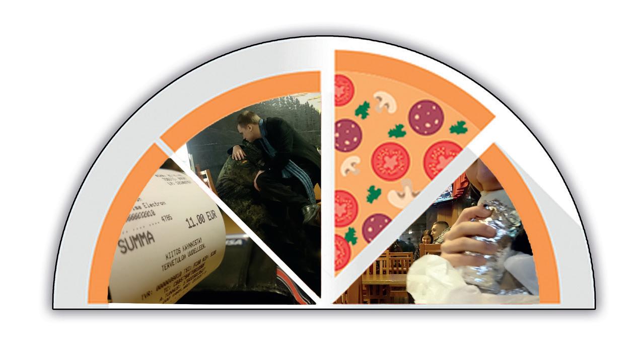 Viisi pizzaa ja kaksi kebabrullaa
