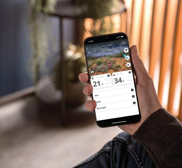 Ogni aspetto dell’ambiente interno di biOrb EARTH è impostato tramite l’app EARTH.