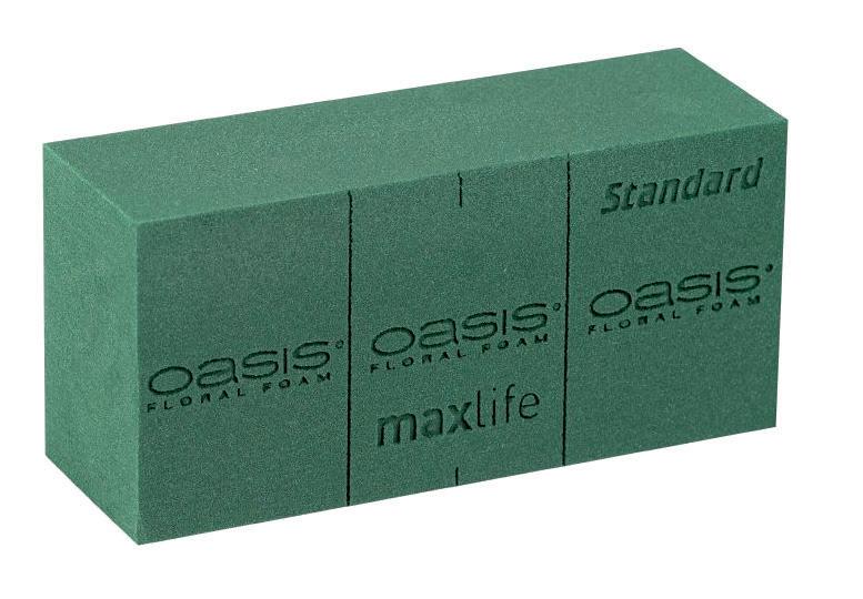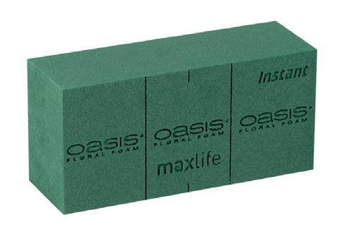 Geringere Festigkeit als die des OASIS® IDEAL Blumensteckschaums, besonders geeignet für Blumen mit sehr dünnen Stielen oder mit dicken, weichen Stielen, für kleine und kompakte Gestecke