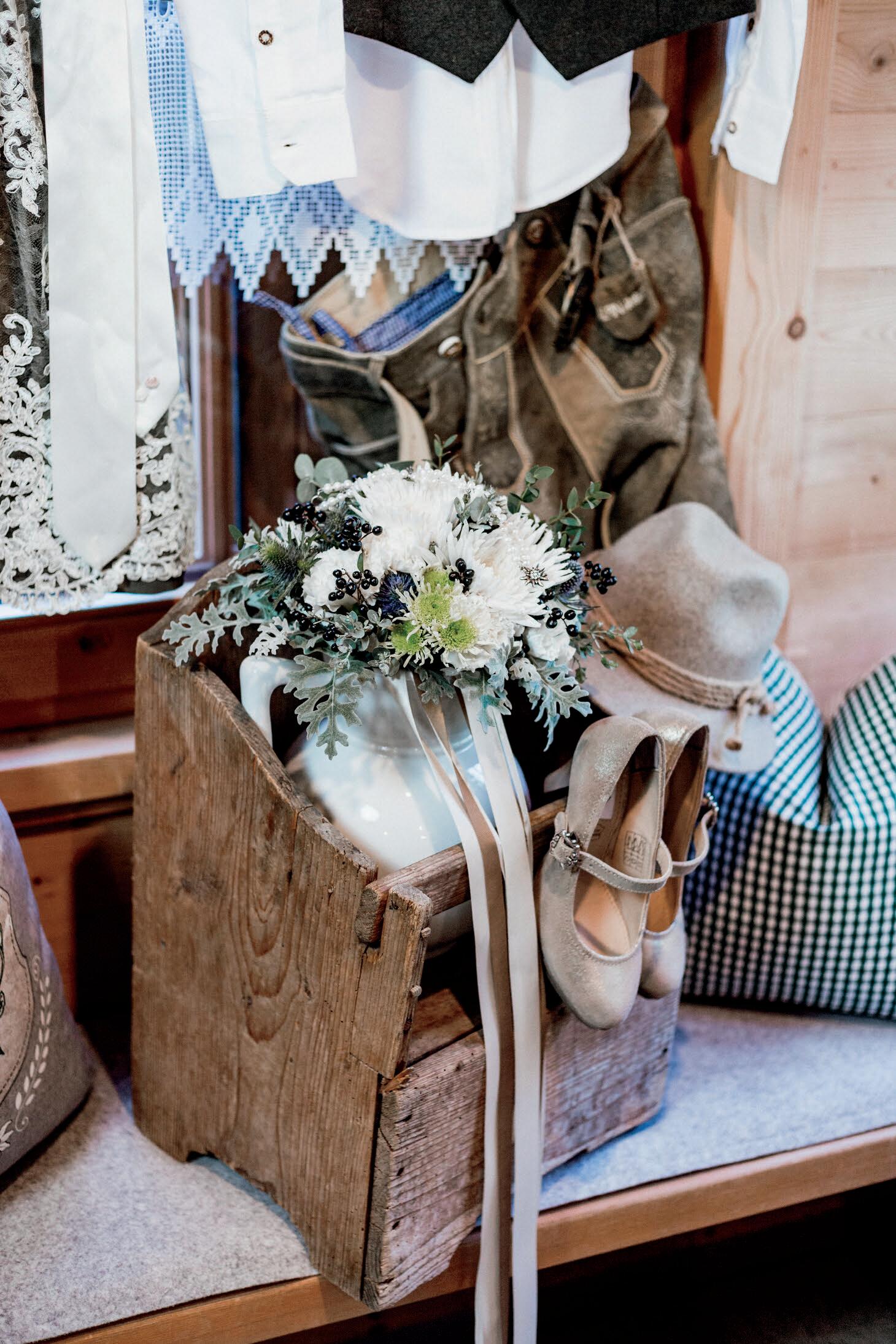 A wedding couple wants to go up and finds its perfect wedding location far up in the mountains. Great emotions paired with the dreamlike scenery create a breathtaking atmosphere. Cottage romance meets tradition.
