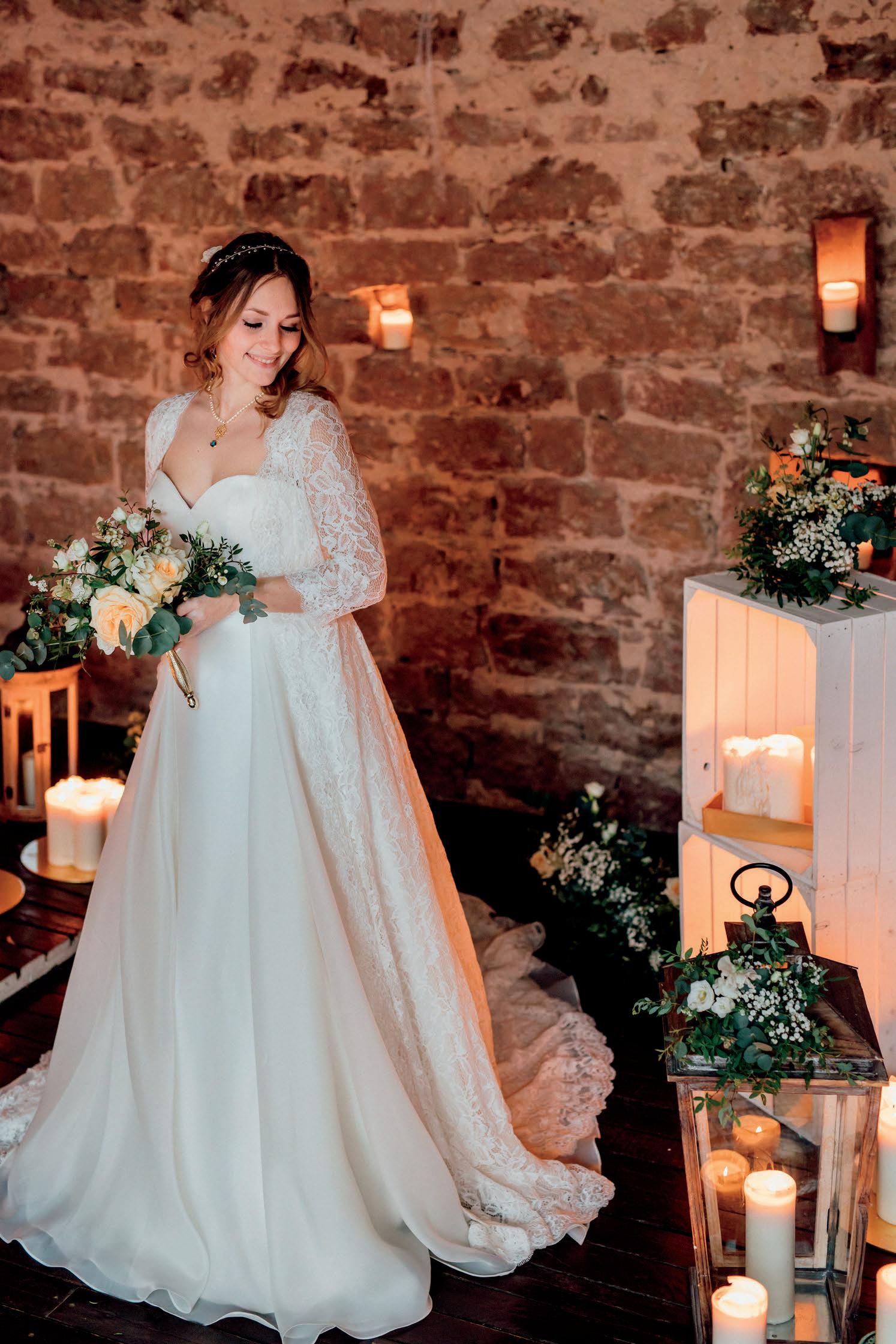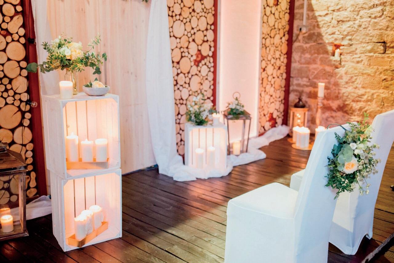A romantic wedding surrounded by close friends and family in the cozy vaulted cellar of a winery. Delicate floral decorations, warm lights and candles create an intimate atmosphere, romance and give space for unforgettable moments.
