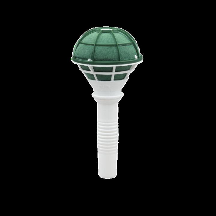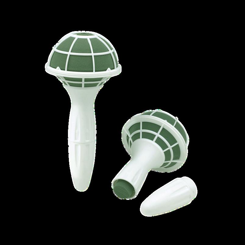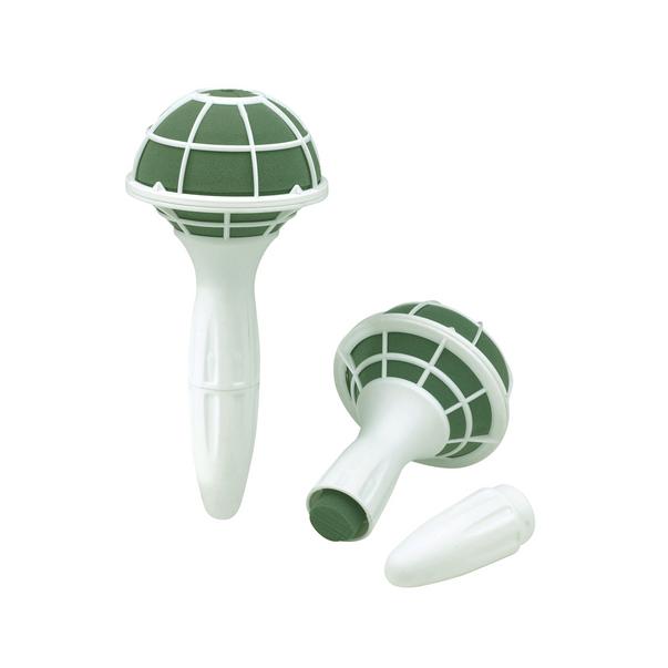Der Schaumkörper ist mit einem Kunststoffgitter versehen und unten geschlossen. Der Brautrstraußhalter besitzt einen ergonomisch geformten Kunststoffgriff für einen besseren Halt