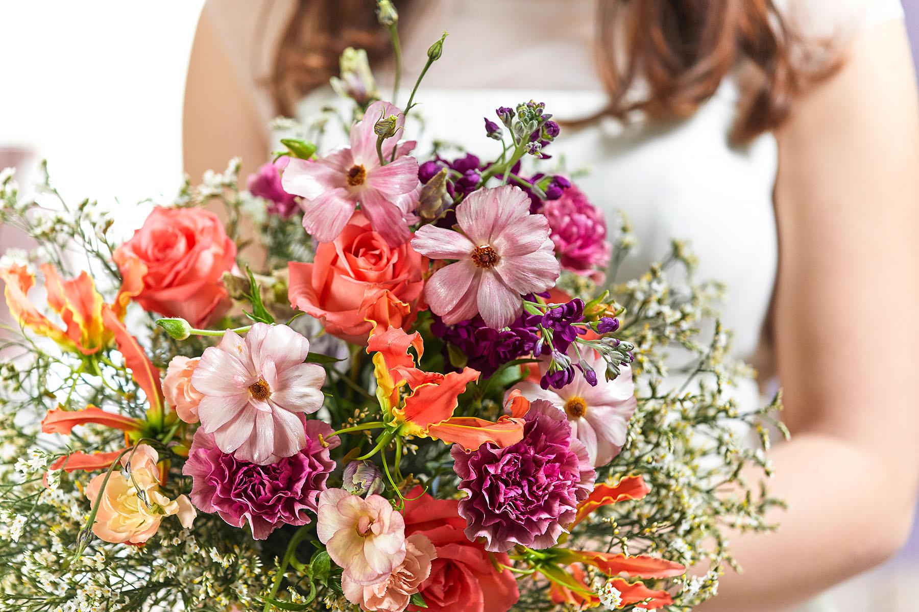 Der fertig gesteckte Brautstrauß bleibt länger frisch, wenn dieser mit FloraLife® Finishing Touch besprüht wird.