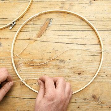 Wickeldraht von der Rolle abwickeln, zusammenknautschen und zu einem offenen Kranz formen. Den Frischblumensteckschaum-Kranz wässern und in das Drahtgeflecht einsetzen. Sukkulenten auf Splittstäbe stecken und in den Kranz einfügen. Alle weiteren Floralien in den Steckschaum einarbeiten und zum Schluss mit Seil und trockenen Ranken dekorieren.