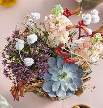 Anigozanthos Cultivar · Cryptanthus bivittatus Jatropha podagrica ’Firecracker’ Leucadendron ’Ayoba ® Star Pearl’ · Protea ’Susara’ · Protea ’Waratah’ Ptilotus obovatus Scabiosa Bon Bon Scoop ™ ’French Vanilla’ · Syngonium podophyllum Ranken