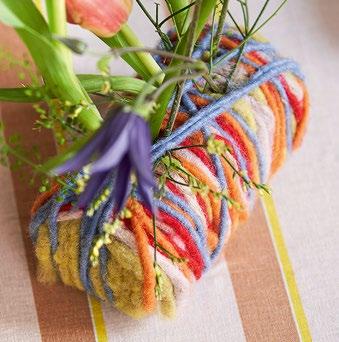 Die mit verschiedenfarbigen Wollschnüren umwickelte Schale wirkt frühlingsbunt und stimmungsvoll.