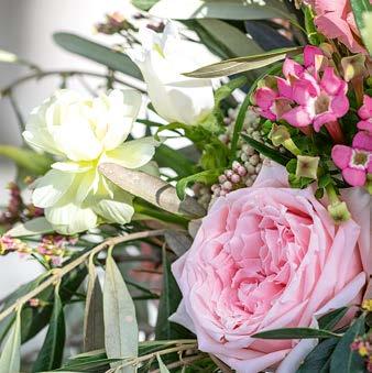 Bouvardia Cultivar Campanula medium · Eustoma grandiflorum Limonium latifolium · Matthiola incana · Olea europaea Ozothamnus diosmifolius · Ranunculus ’Butterfly’ · Rosa Cultivar