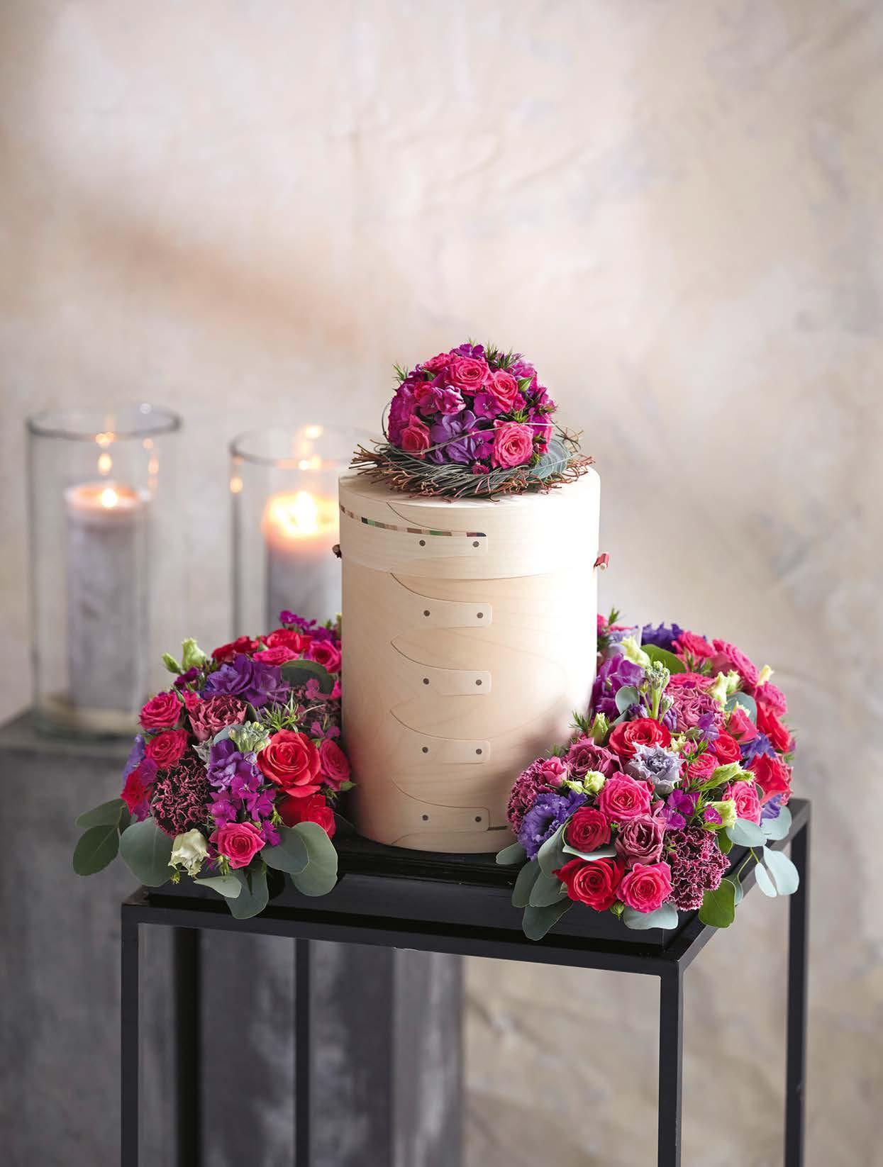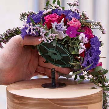 Die Kranzform, in die sich auch eine Urne integrieren lässt, symbolisiert in der Trauerfloristik die Unendlichkeit des Lebens und gehört zu den wichtigsten floralen Beigaben einer Beisetzung. Aber auch andere floristische Gestaltungen dienen als schmückendes Beiwerk für die Urne. Die vielfältigen Steckschaumunterlagen der Firma Smithers-Oasis stellen die passende Basis für FloristInnen bereit.