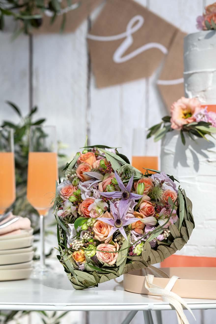 Das Laub in der mattgrün-gräulichen Farbigkeit und die gute Haltbarkeit dieses Werkstoffs ist derzeit sehr nachgefragt – auch beim Hochzeitsschmuck. Sowohl die Brautstraußhalter als auch die speziellen Unterlagen zur Befestigung des Hochzeitsschmucks auf den Hochzeitsautos sind hilfreiche Produkte von Smithers-Oasis, um den floralen Schmuck rund ums Olivengrün perfekt herstellen zu können.