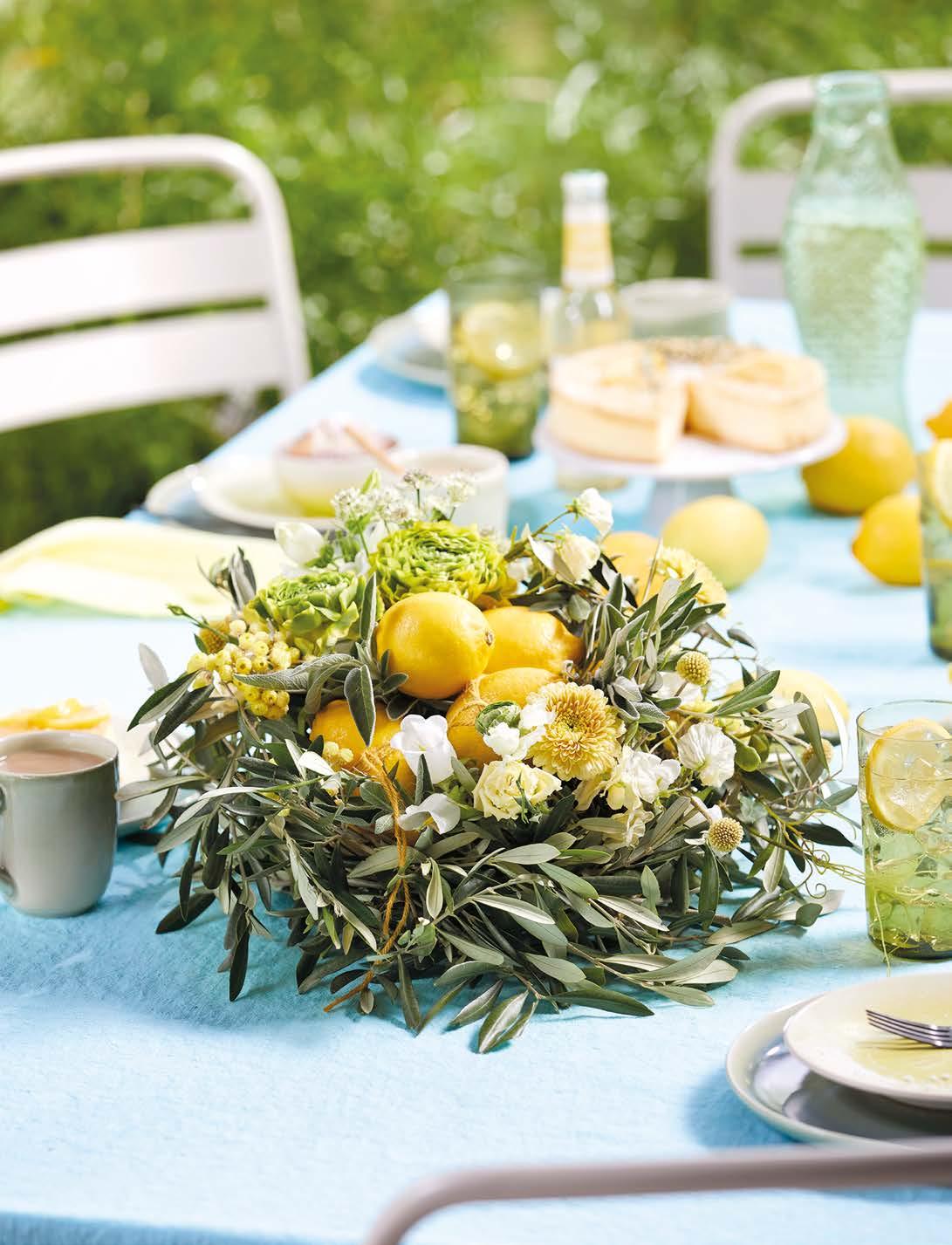 Leuchtend gelbe Blüten, mediterrane Kräuter und frische Zitronen sorgen für Sommerlaune auf dem Tisch. Mit den verschiedenen Steckbasen und weiteren floralen Hilfsmitteln von Smithers-Oasis gelingen die verschiedenen TischschmuckVarianten im Handumdrehen.