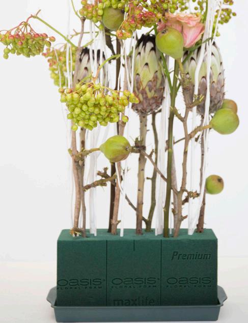 As we suggest with all floral media, saturate the OASIS® TerraBrick® Floral Media with a solution made of water and FloraLife® Flower Food, which will further enhance flower life.