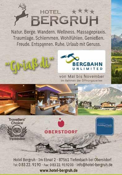 Das „Oberstdorf Magazin” ist in den Tourist-Informationen im Oberstdorf Haus, Tiefenbach und Schöllang für 1,70 € erhältlich. Oberstdorfer Gäste mit Allgäu-Walser-Pass Premium und Einheimische erhalten das „Oberstdorf Magazin“ kostenlos. Veröffentlichung von sämtlichen Texten und Bildern, auch auszugsweise, nur mit Genehmigung des Herausgebers. Veranstaltungshinweise bzw. -preise vorbehaltlich Änderungen.