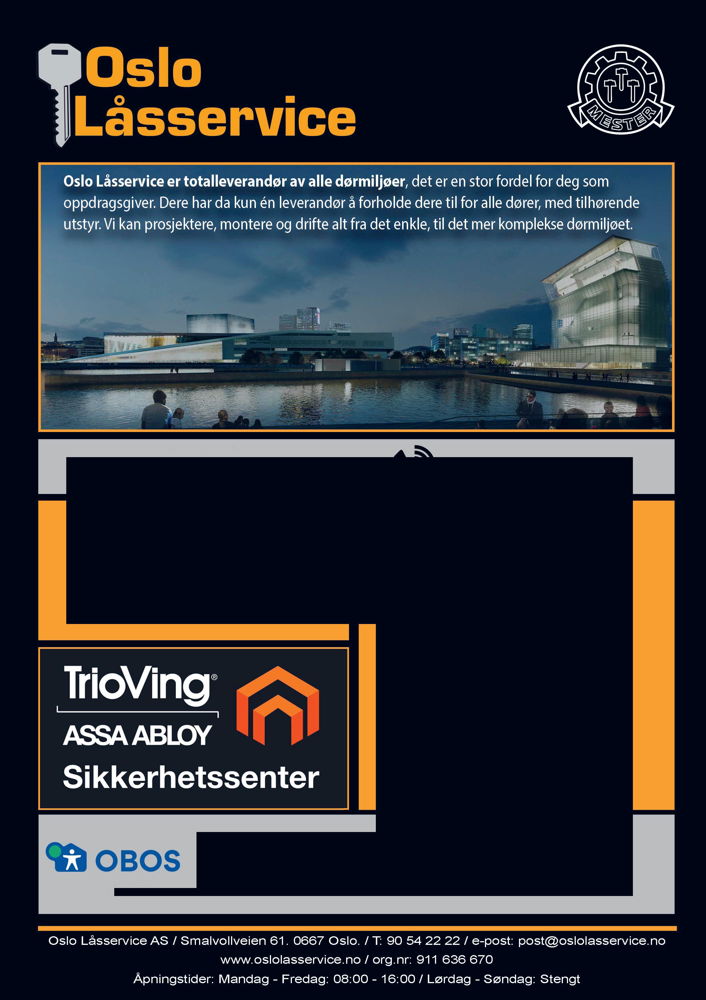 Vår mangeårige kompetanse på dører og levering av komplette dørmiljø har gjort oss til en attraktiv leverandør. Vi blir i større og større grad foretrukket til levering av komplette dørmiljø, der vi prosjekterer, monterer og drifter alt fra nye dører til lås, beslag, dørautomatikk, adgangskontroll, porttelefon, m.m.