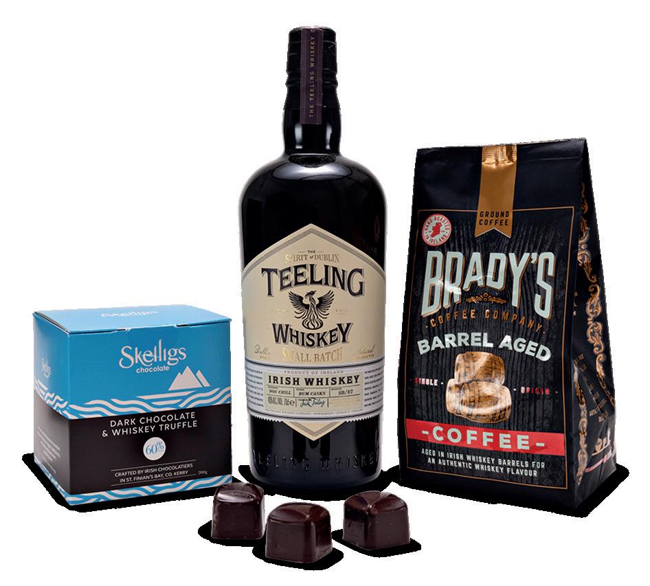 A lovely gift for any whiskey fan, this hamper includes a bottle of small batch Irish whiskey from Co Kerry’s Skellig Six18 Distillery.