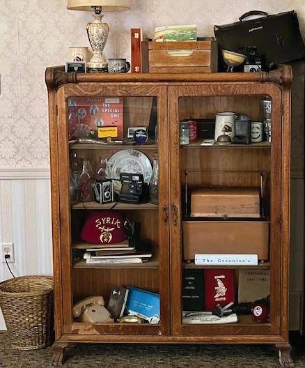 A close-up of the memorabilia case. All three Greenlee Funeral Homes have a similar case.