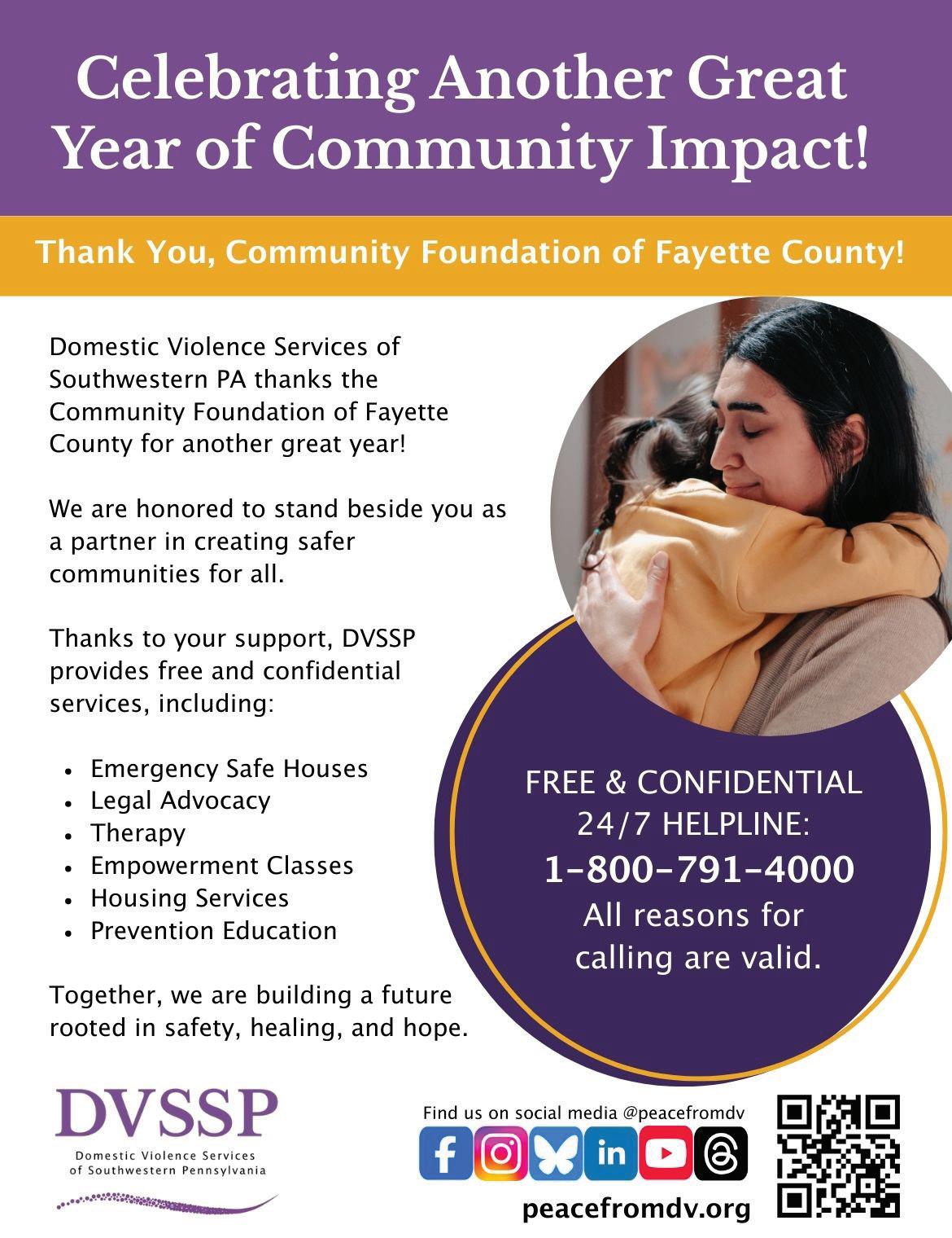 Contact: Jessica Hajek-Bates, Chief Executive Officer | 724-437-8600 x112 | jhajek-bates@cffayettepa.org