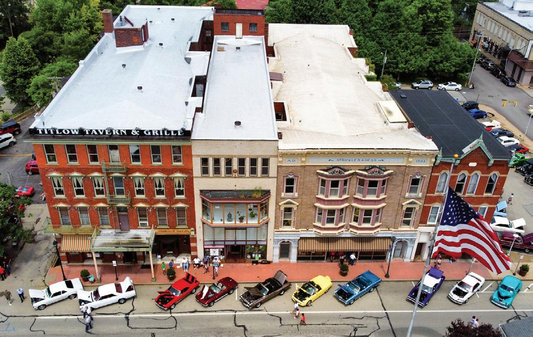 ABOVE: The White Swan Hotel was built in the early 1800’s as the last stop for food, drink and lodging before traveling over the mountains. LEFT: Visitors to the Founding Day Festival on June 29 can learn more about the Barnes Mansion during the Fayette Historical Society’s self-guided tour of Uniontown.