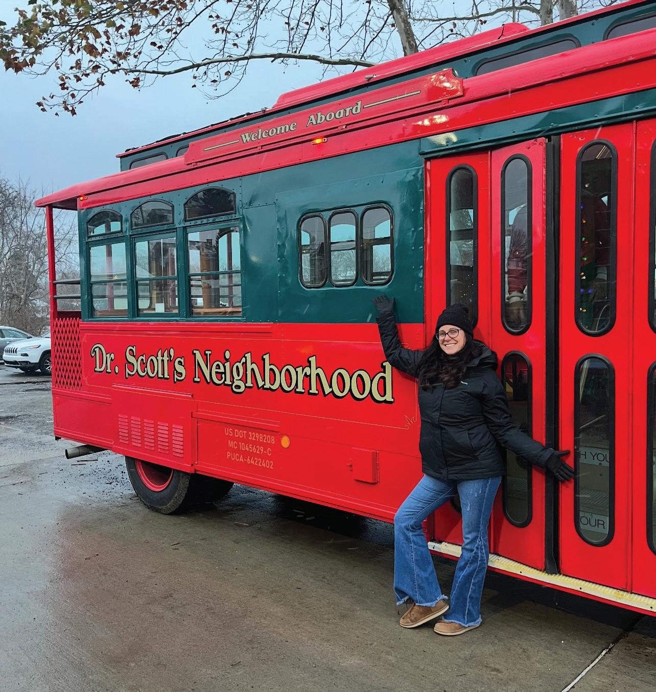 Dr. Jessica Scott purchased her trolley last fall with the hopes of participating in community events and supporting her students over the summer. The serendipitous “Dr. Scott’s Neighborhood” on the side of the trolley was the sign Jessica Scott needed to convince herself to buy it.