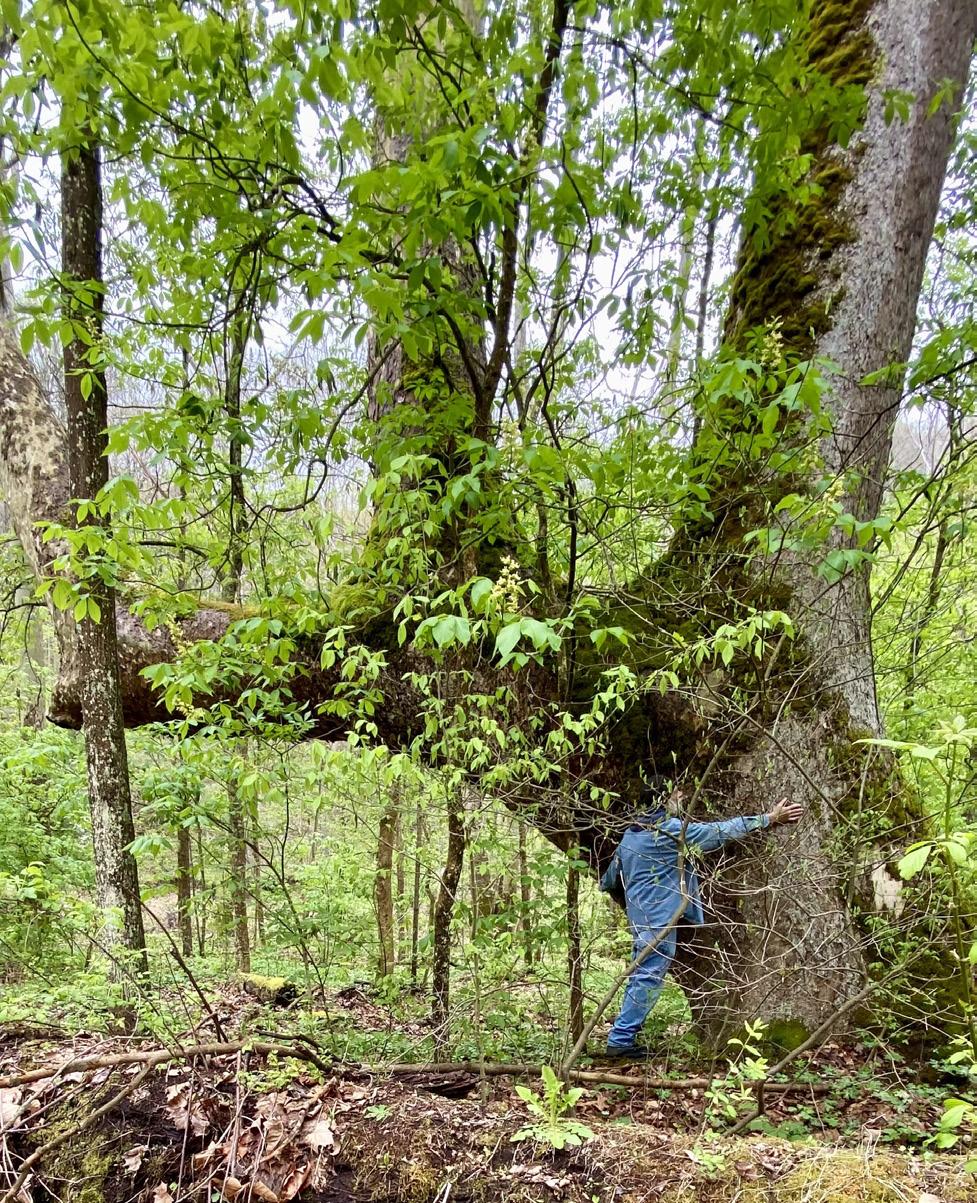 A massive sycamore guards the old iron bridge that spans the creek — a centuries-old “marker tree” bent into directional shape by the Eastern Woodland tribes that hunted here for thousands of years.