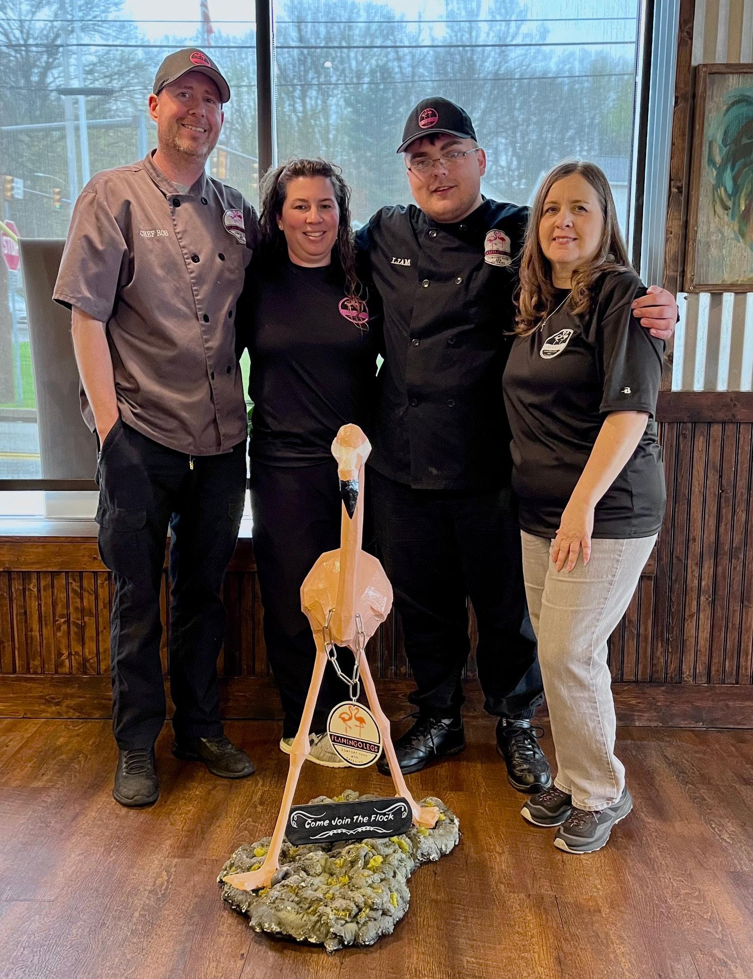 Left: The staff of Flamingo Legs. From left, Chef Robert Smith, Danielle Smith, Sous Chef Ian McIntyre and Barb Leone