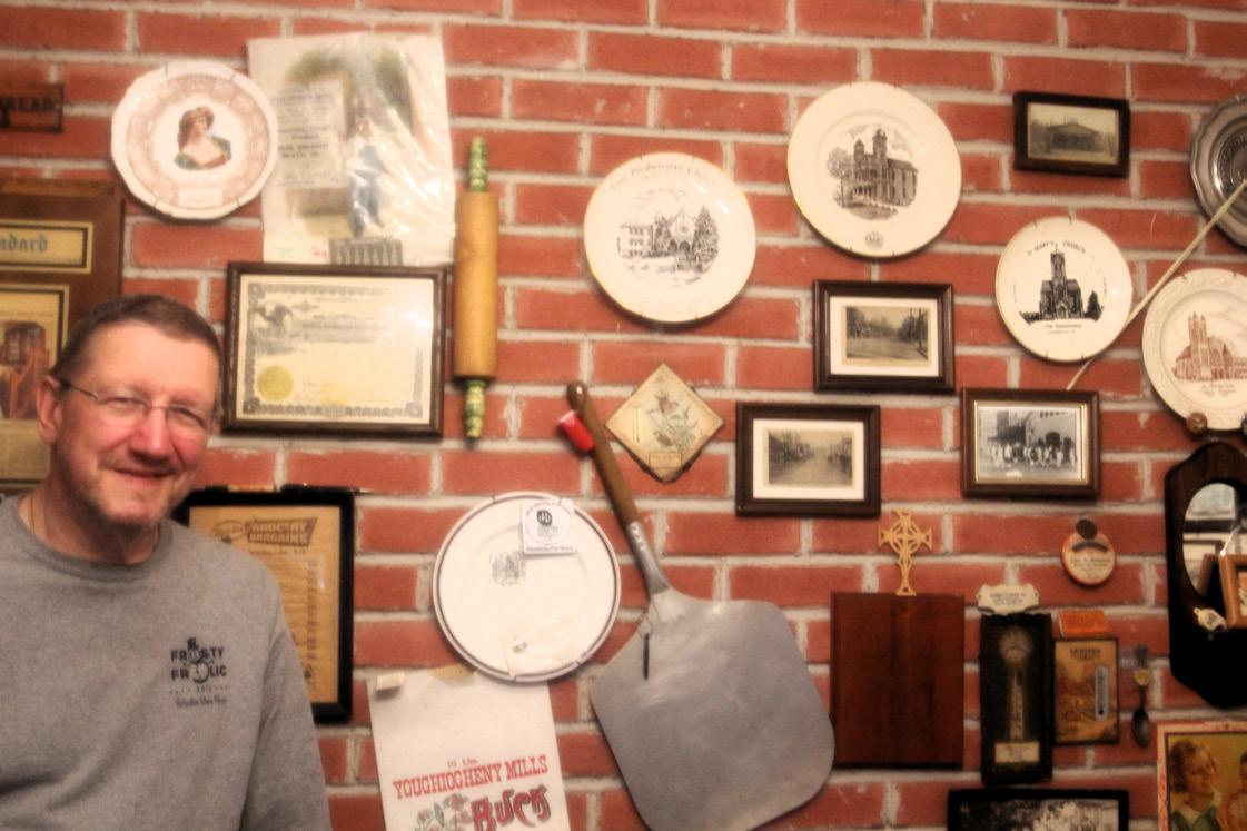 From a pair of wooden shoes brought back from WWII by his uncle Mike Tyhonas, a gift for Niccolai’s mother, Joan Matty Niccola, to an old dining room table, one of the first bought at auction in Fayette City, every nook and cranny seems filled with one sort of memory or another.