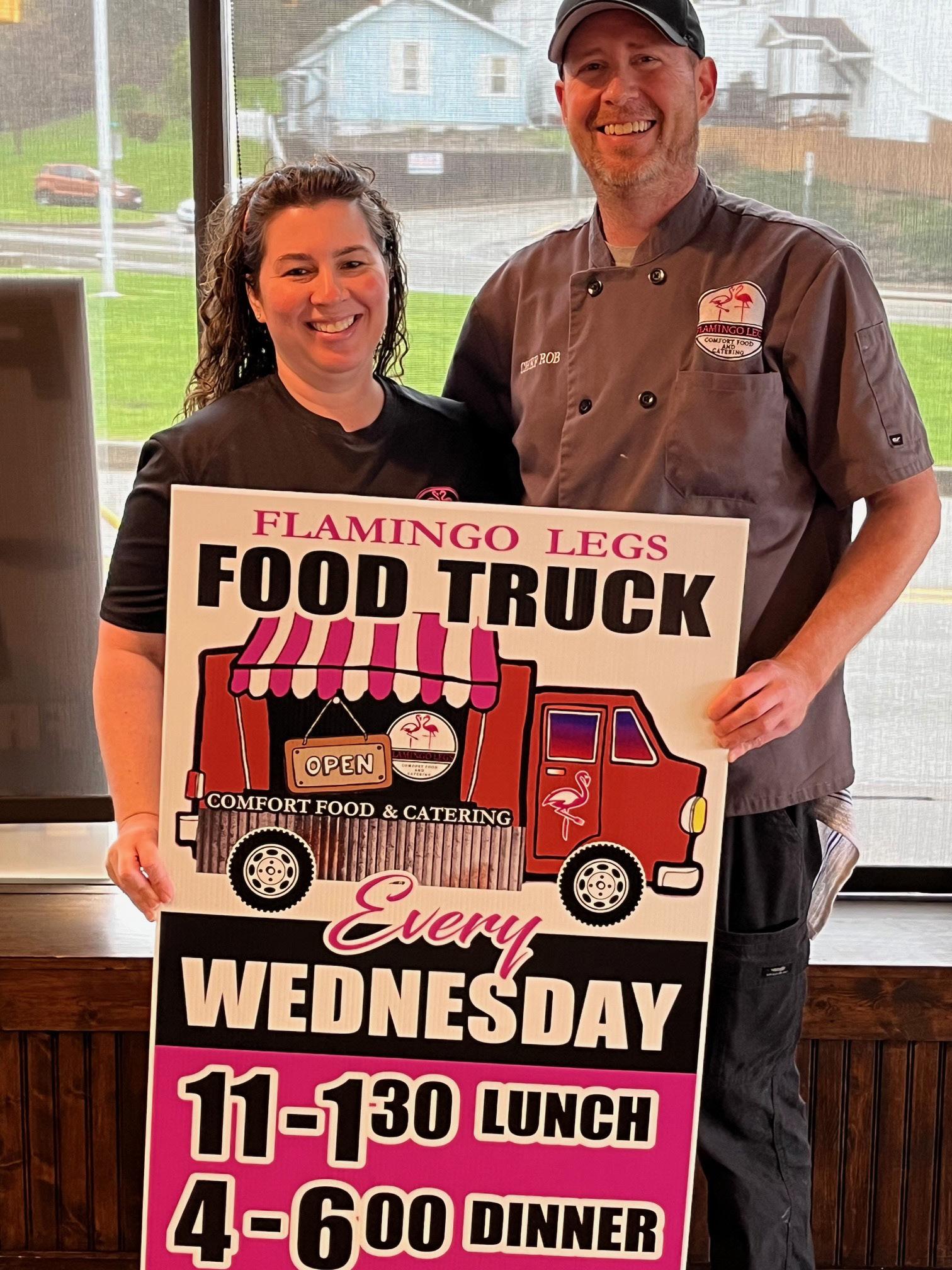 Danielle and Robert Smith advertising their Wednesday food truck lunch and dinner