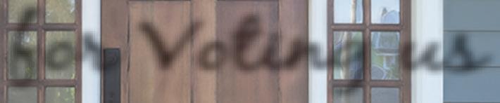 Top to bottom: Barry Niccolai sits at the doorway to the Molly Fleming House, the exterior of the Molly Fleming House and Niccolai in the kitchen with many artifacts displayed on the wall
