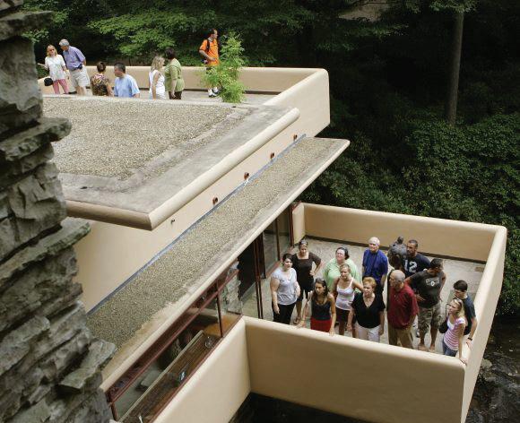Those are pretty high-flown words for a house. But Fallingwater has never merely been a house. One of a little more than 1,000 structures Wright designed in his lifetime, Fallingwater is perhaps the most famous of the architect’s creations, along with the Guggenheim Museum in New York. Its one-of-a-kind design has terraces stacked over a waterfall that’s part of the mountain stream Bear Run. It is a National Historic Landmark and has joined UNESCO’s list of World Heritage sites, which also includes the Pyramids in Egypt, Mount Fuji in Japan and Westminster Abbey in London.