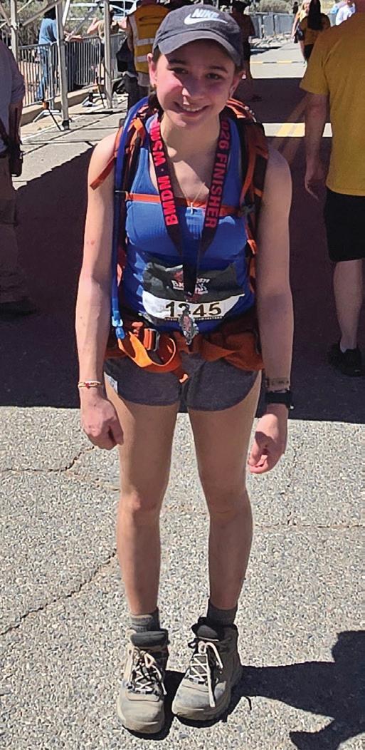sonnel. Only about 20% chose to compete in the Heavy Division. Among them was Juliette Hirzel. The 14-yearold Upper St. Clair native became the youngest person in the event’s 37-year history to complete the Heavy Division. To avoid disqualification, Hirzel carried a pack weighing exactly 40 pounds – nearly 38% of her body weight. An eighth-grader at Fort Couch Middle School, Hirzel is no stranger to the event.