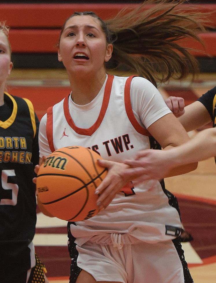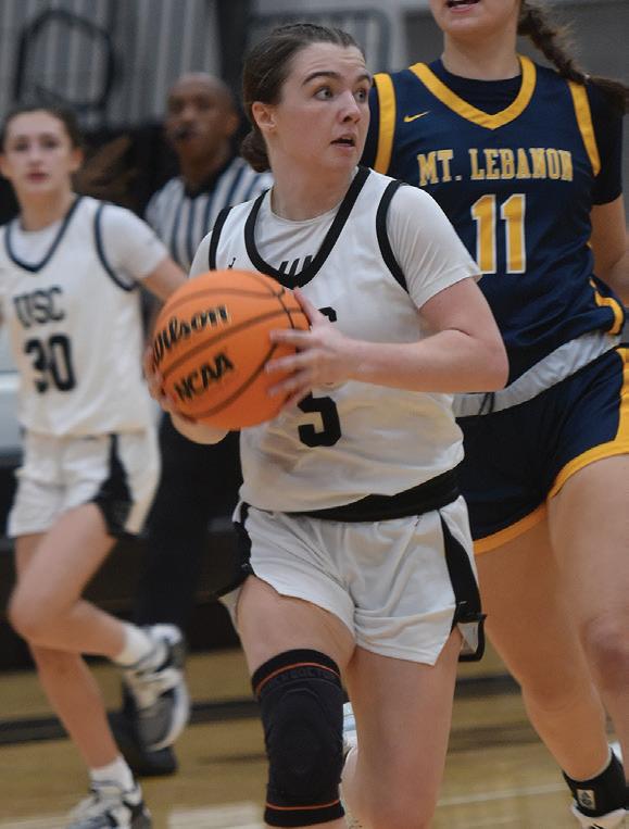 After going undefeated during section action, South Fayette embarked on defense of its state title but encountered a roadblock in the quarterfinals of the district playoffs. After putting up a strong showing, Trinity’s upset bid fell short as the Lady Lions survived the scare, escaping with a 26-23 victory.