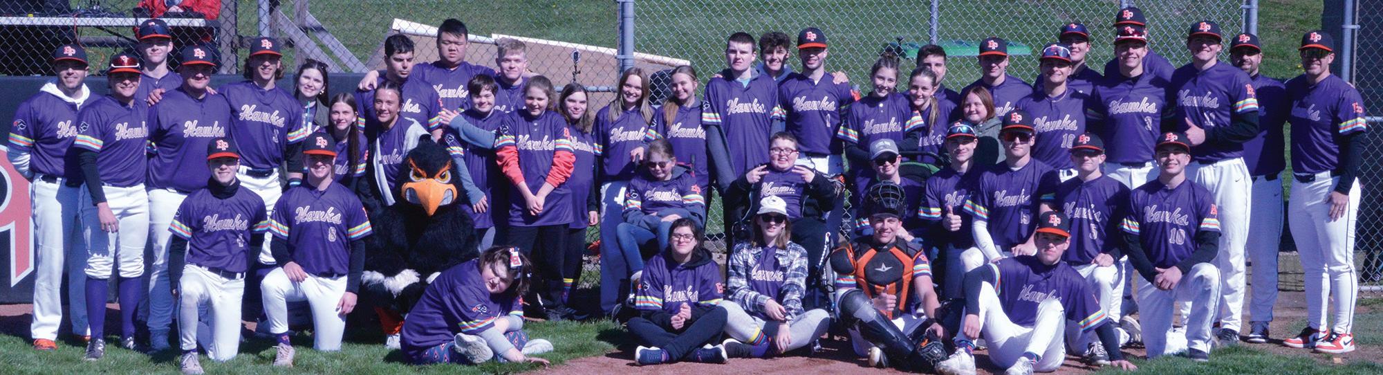 For the occasion, assistant baseball coach and peer PE teacher Jared King designed a special edition uniform that was worn not only by the players but also by Best Buddies members. On the purple (the color of autism) jersey were colored stripes on the sleeves. Each shade represented the five mission pillars of the organization. They are yellow for one-to-one friendships, lime green for integrated employment, orange for leadership development, lavender for inclusive living and sky blue for family support.