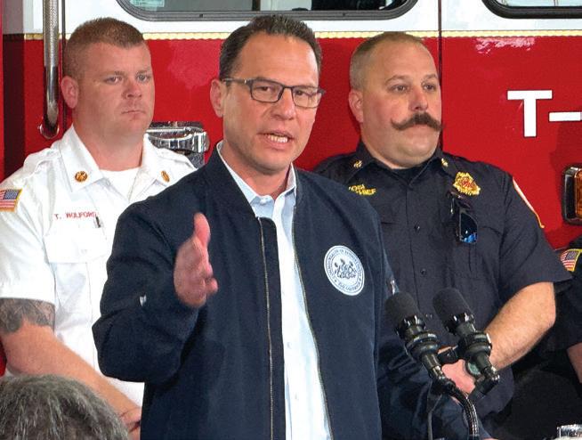 Shapiro was flanked by dozens of officials representing fire departments in the region, including Peters, Cecil, North Strabane and South Strabane townships. South Strabane Fire Department Chief Jordan Cramer said increased funding is something needed “badly” by the Washington County agencies.