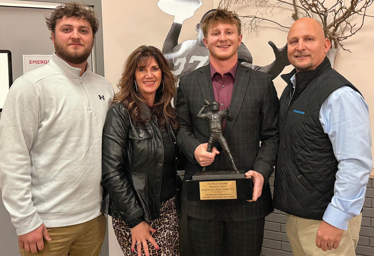 DiLucia also guided the Indians to a conference championship and a PIAA semifinal appearance. Peters Township finished 13-1 overall after falling to Bishop McDevitt of Harrisburg, 3128, on a last-second field goal on Nov. 29 at Mansion Park in Altoona. During the 2025 campaign, DiLucia passed for 2,782 yards and had 22 touchdowns to only six interceptions. As pleased as he was to win the Willie Thrower Award, DiLucia was also a bit relieved. He had been nominated for the distinction two other times.