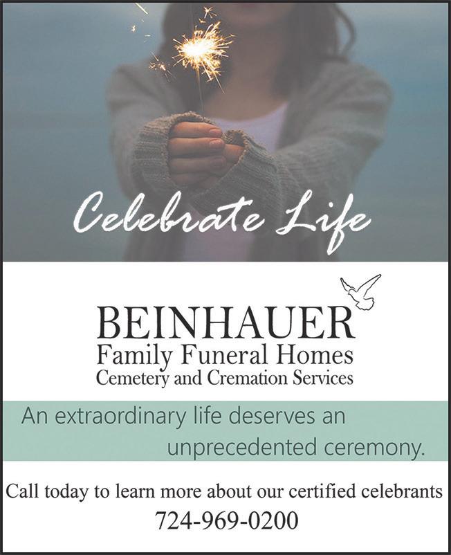 Nominees may be alumni who graduated five or more years ago, former staff members and/or former volunteers of the high school. Nominations may be completed online at uscsd.k12.pa.us/information/alumni/hallsof-fame. Those selected for the new class of inductees will be honored during a celebration on Sept. 24. Contact Wagner at 412-833-1600 ext. 2530 or email hof@uscsd.k12. pa.us for more information.
