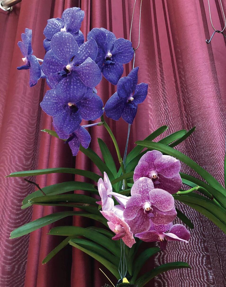 “The ones that I don’t kill,” said Powell. “I love the Vanda. It’s an epiphytic orchid and generally grows without any media.” These types of orchids have aerial roots and need to be watered or misted daily.